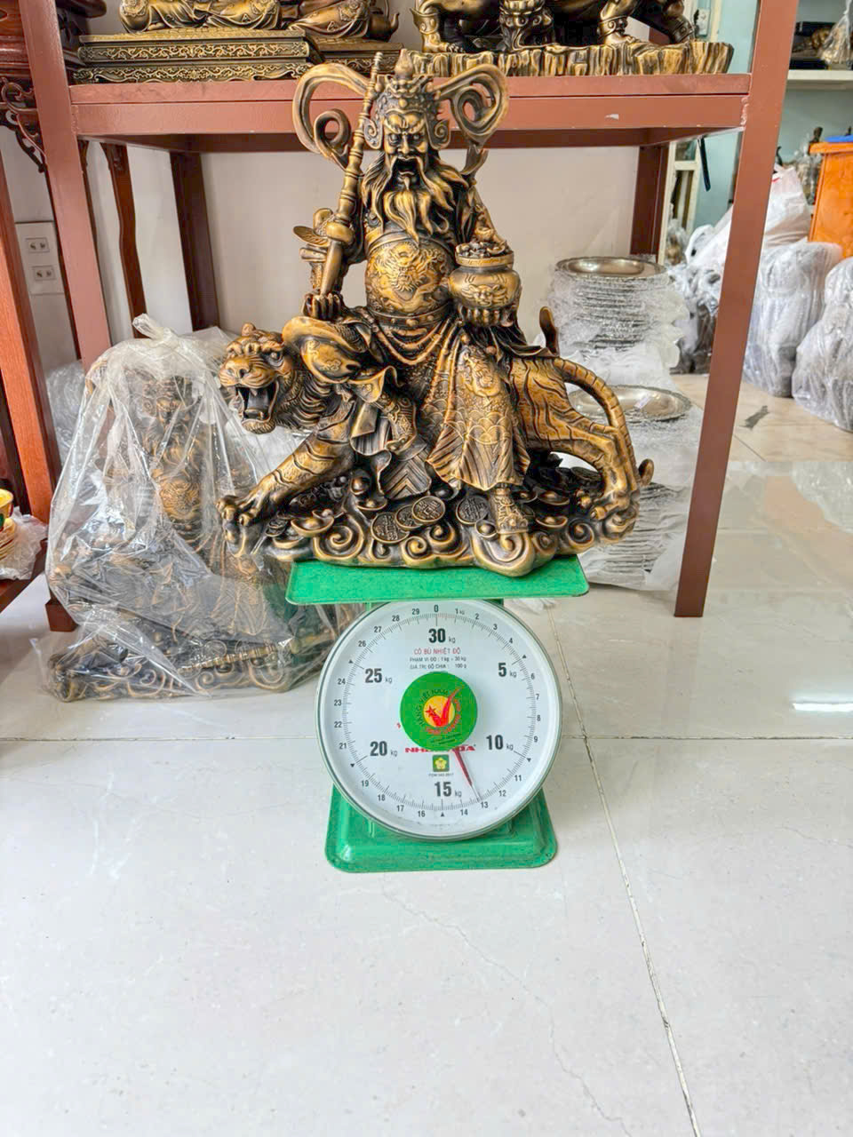Chi tiết: Từng đường nét được chạm khắc tỉ mỉ, từ bộ giáp, vũ khí đến biểu cảm khuôn mặt thể hiện sự uy nghi và cương nghị.